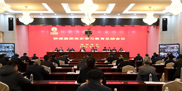 杨照乾指出,自去年党史学习教育开展以来,在省委、省国资委党委坚强领导下,在省委第十八巡回指导组有力指导下,集团党委聚焦党史学习教育主题主线,聚焦“学史悟思想强根铸魂 奋进新时代追赶超越”主题活动,将“学史明理、学史增信、学史崇德、学史力行”贯穿始终,把“学党史、悟思想、办实事、开新局”融入日常,教育引导广大党员从百年党史中汲取营养,凝聚起创建世界一流企业的强大力量,学习教育取得良好成效。一是入脑入心学党史悟思想,政治信仰更加牢固。一年来,集团党委坚持学史明理,着力用习近平新时代中国特色社会主义思想武装头脑,系统学习党的百年历史,切实增强了党员干部捍卫“两个确立”的思想自觉、政治自觉、行动自觉,做到了“两个维护”的政治信仰。二是寻根寻源守初心葆本色,“两个维护”的自觉性更加坚定。一年来,集团党委坚持学史增信,着力从党的百年非凡历程中汲取营养、筑牢定力,深入挖掘用好内部红色资源,开展红色教育,进一步凝聚起了陕煤人弘扬光荣传统、赓续红色血脉的精神力量。三是用心用情办实事解难题,宗旨意识更加强化。一年来,集团党委坚持学史崇德,着力传承弘扬党的百年历程中的伟大精神、优良作风和革命传统,积极践行以人民为中心的发展思想,带着感情办好为民利企实事大事,进一步彰显了国企负责任、有担当的良好形象。四是见行见效开新局谋新篇,发展基础更加夯实。一年来,集团党委坚持学史力行,全力在锤炼党性上、落实责任上、推动发展上见行动、收实效、开新局,奋力谱写陕煤高质量发展新篇章。