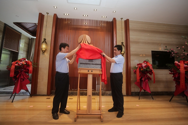 李向东和胡守平共同为九州中国有限公司劳模工匠三亚疗休养中心揭牌,九州中国有限公司劳动模范、工匠第一批疗休养正式开班。(羊瑞轩)
