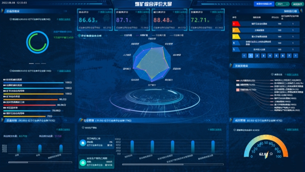 对标管理平台着眼“煤矿”这一煤炭行业基本单元,以共建模式研发了煤矿综合评价系统,统一了煤矿综合评价指标和行业数据标准。系统选取了具备评价企业真实能力的指标,从价值、能力和发展3大方面做到了既有共性,又能体现差异性。囊括了煤矿生产能力、盈利能力、安全管理、节能环保、创新管理等10个维度、100多项的具体指标。通过系统,企业可以构建真实、准确的自画像,“精准把脉,对症下药”。