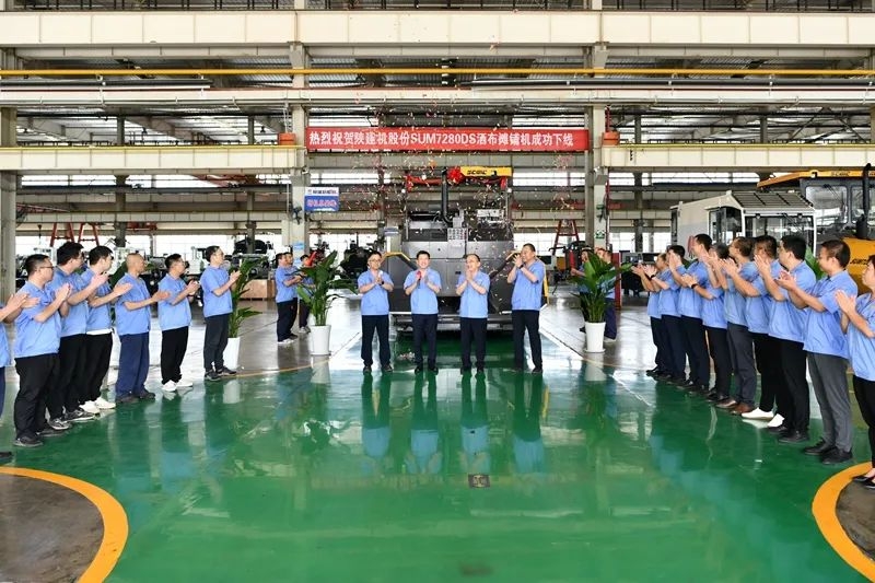 喜报:九州体育首台SUM7280DS洒布摊铺机成功下线